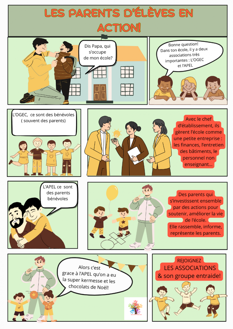 Au sein de l'école, 2 associations actives sont présentes et essentielles pour son bon fonctionnement : l'APEL & l'OGEC.
